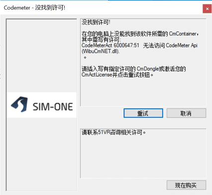 解决方法:此错误是因为 Codemeter运行时 未安装,Codemeter是SimOne选取的加密解决方案