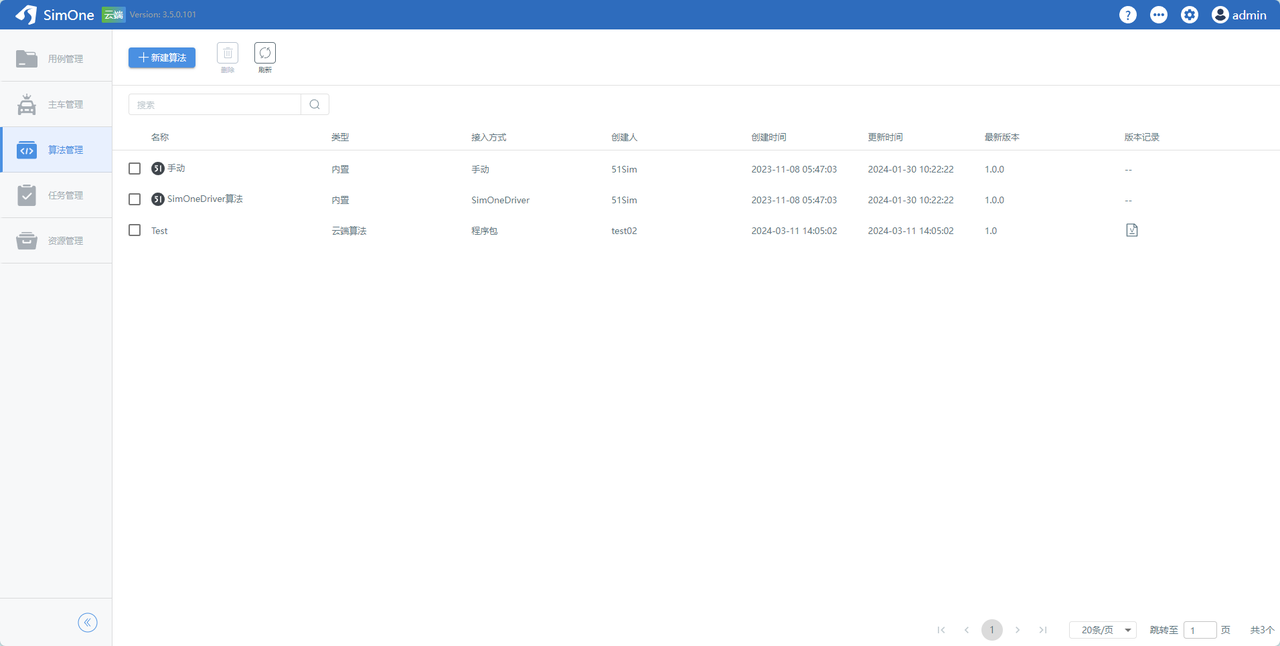 新增算法管理模块,区分出:云端算法可共享,满足云端批量验证的需求,客户端算法面向研发人员,便于进行研发联调测试,更贴近用户使用场景;