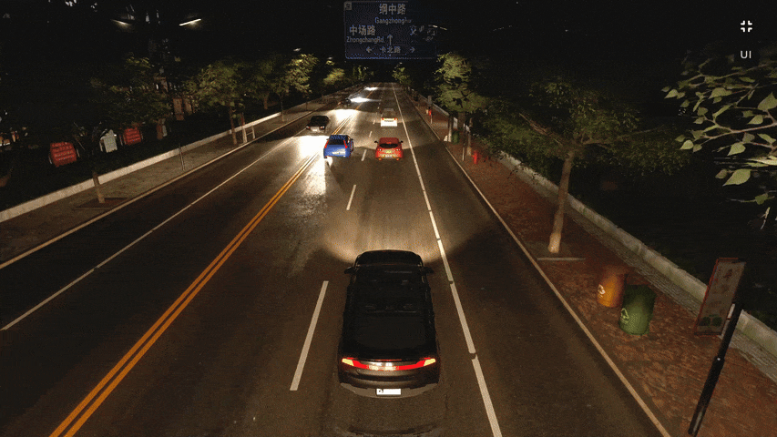 夜景效果增强 :增强原子地图三车道夜景的感知效果。