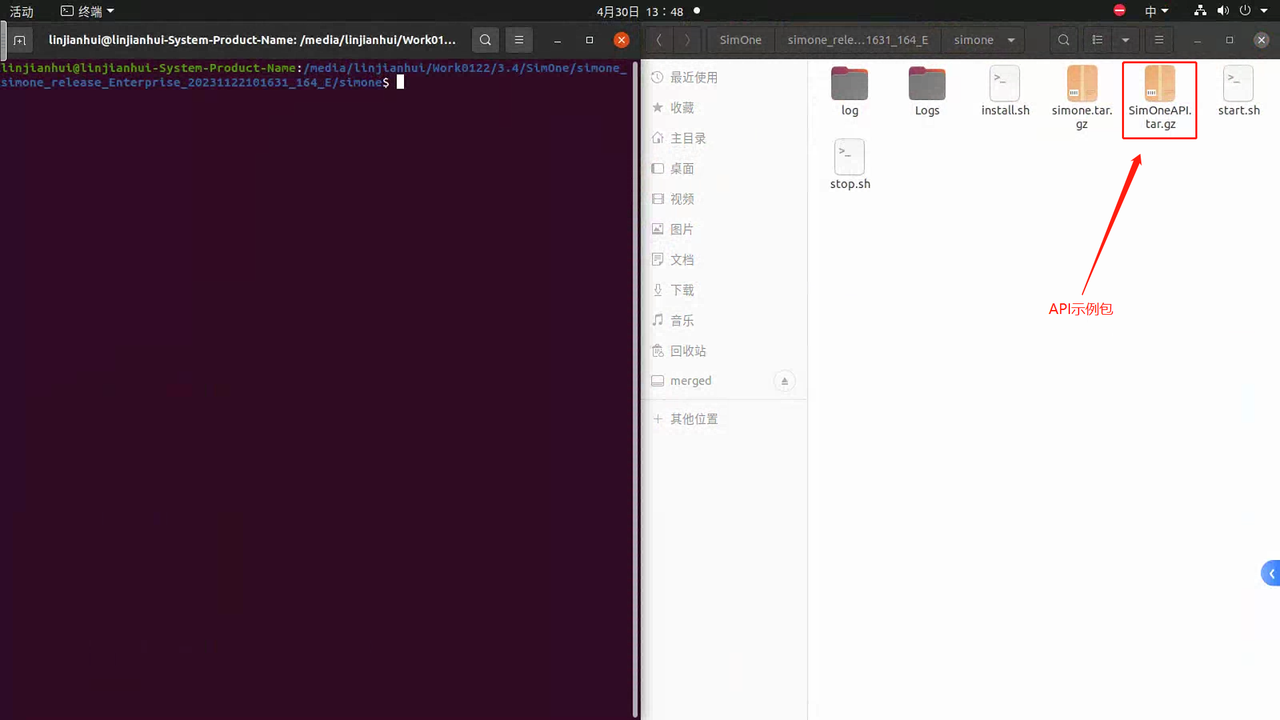 Linux 安装包附随带有 API 使用示例: SimOneAPI.tar.gz
