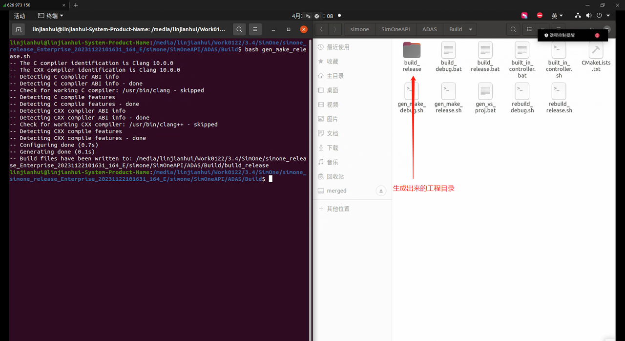 进入 SimOne 安装目录中的 /SimOne/SimOneAPI/ADAS/Bulid ,执行命令