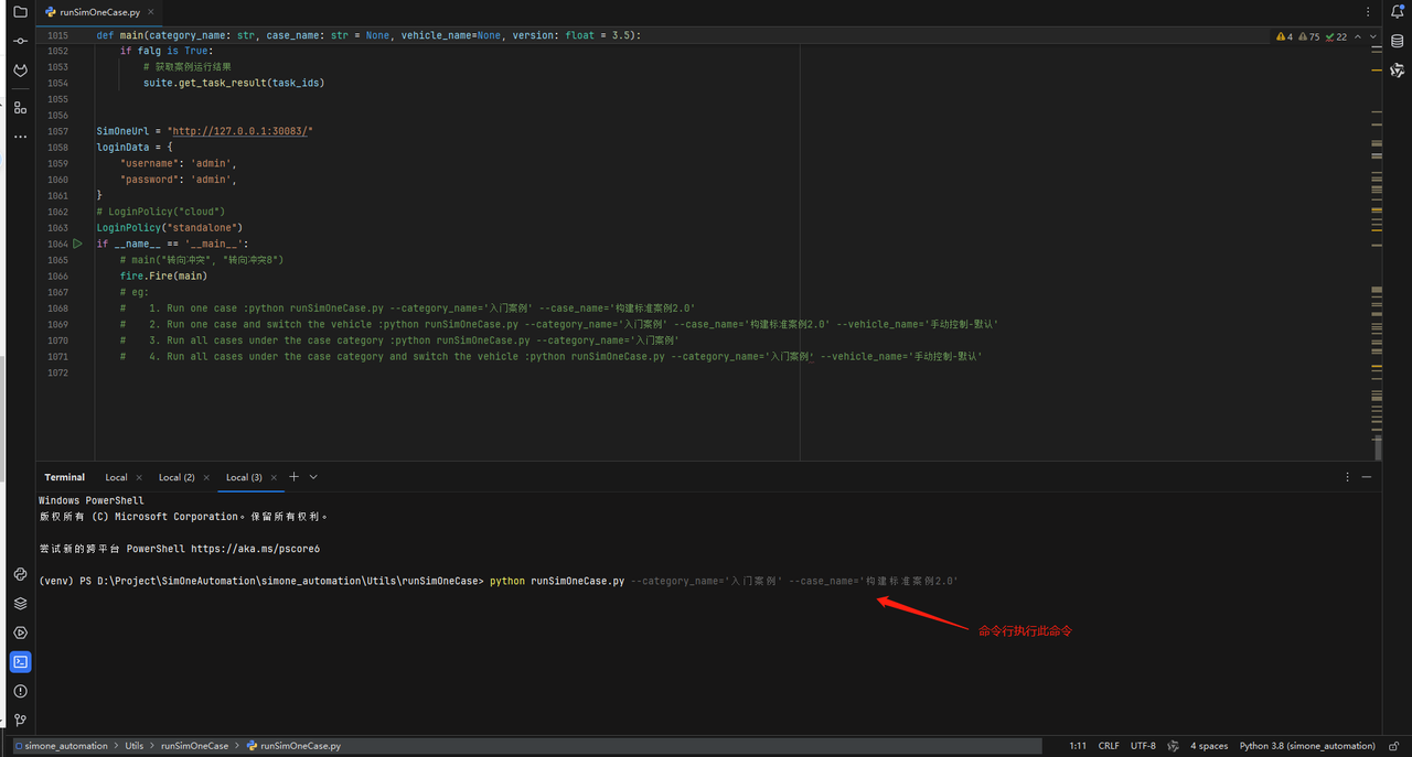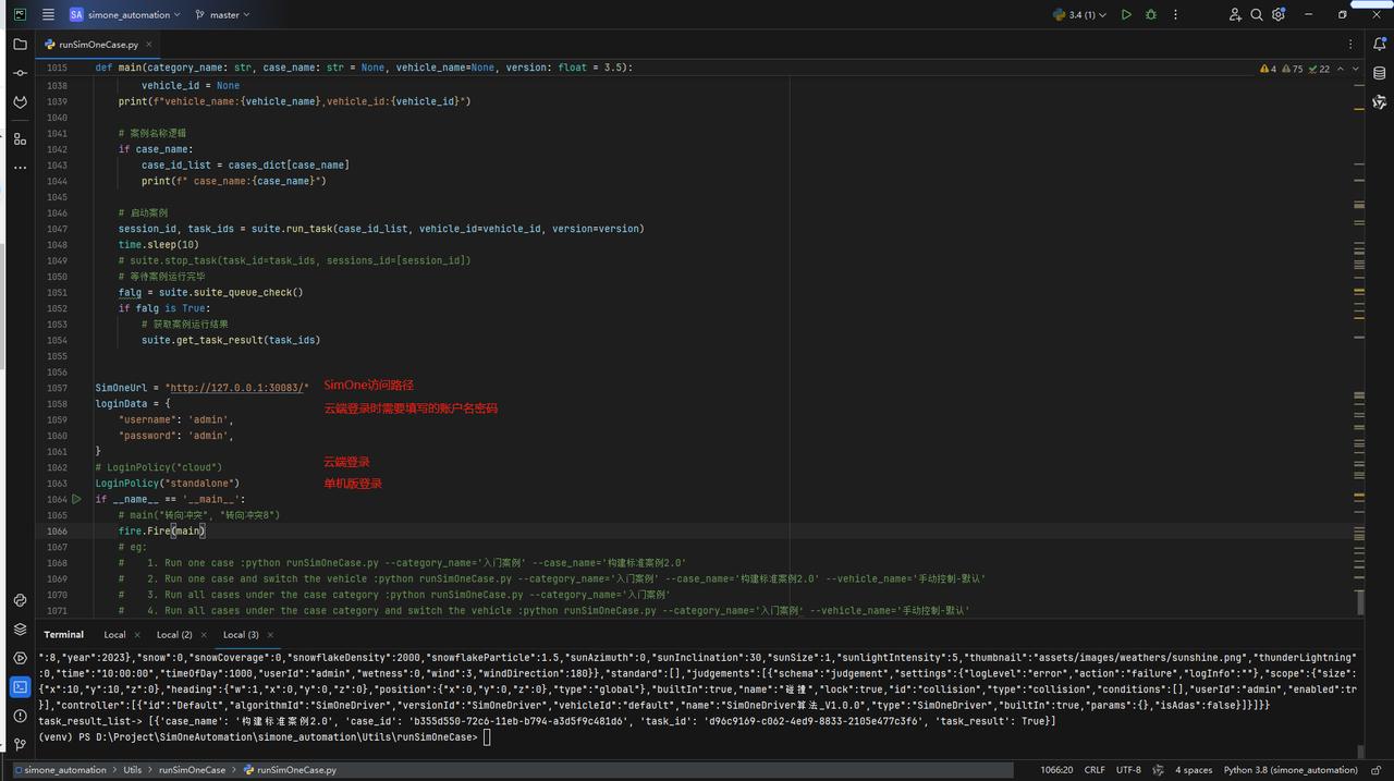 python xxx.py --category_name='入门案例' --case_name='构建标准案例2.0' --vehicle_name='手动控制-默认'运行案例库中所有的案例: