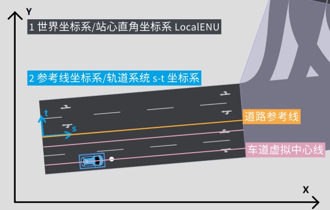 路网运行时根据不同参考线基准分别定义了 2 个 s-t 坐标系: