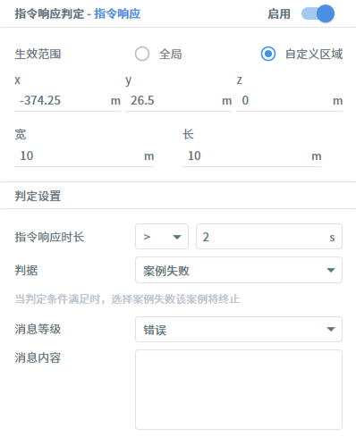 指令响应,当主车响应指令的时长在设定的范围内,触发判定。